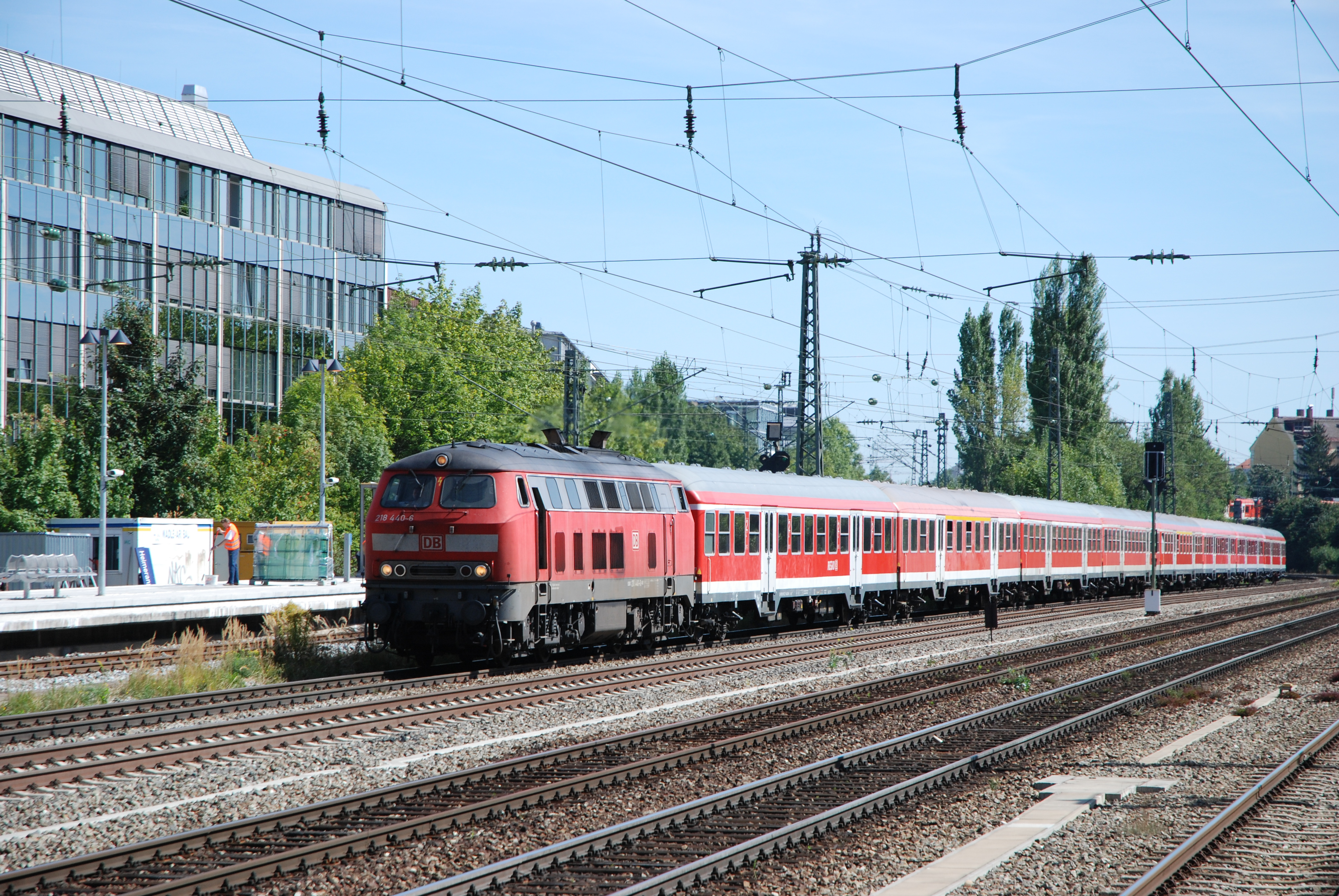 München-Heimeranplatz, August 31st, 2009. While the class 218 is still in regular service on München - Mühldorf local trains, the ancient n-Wagen ("Silberlinge") have since been replaced by a variety of double-deckers.