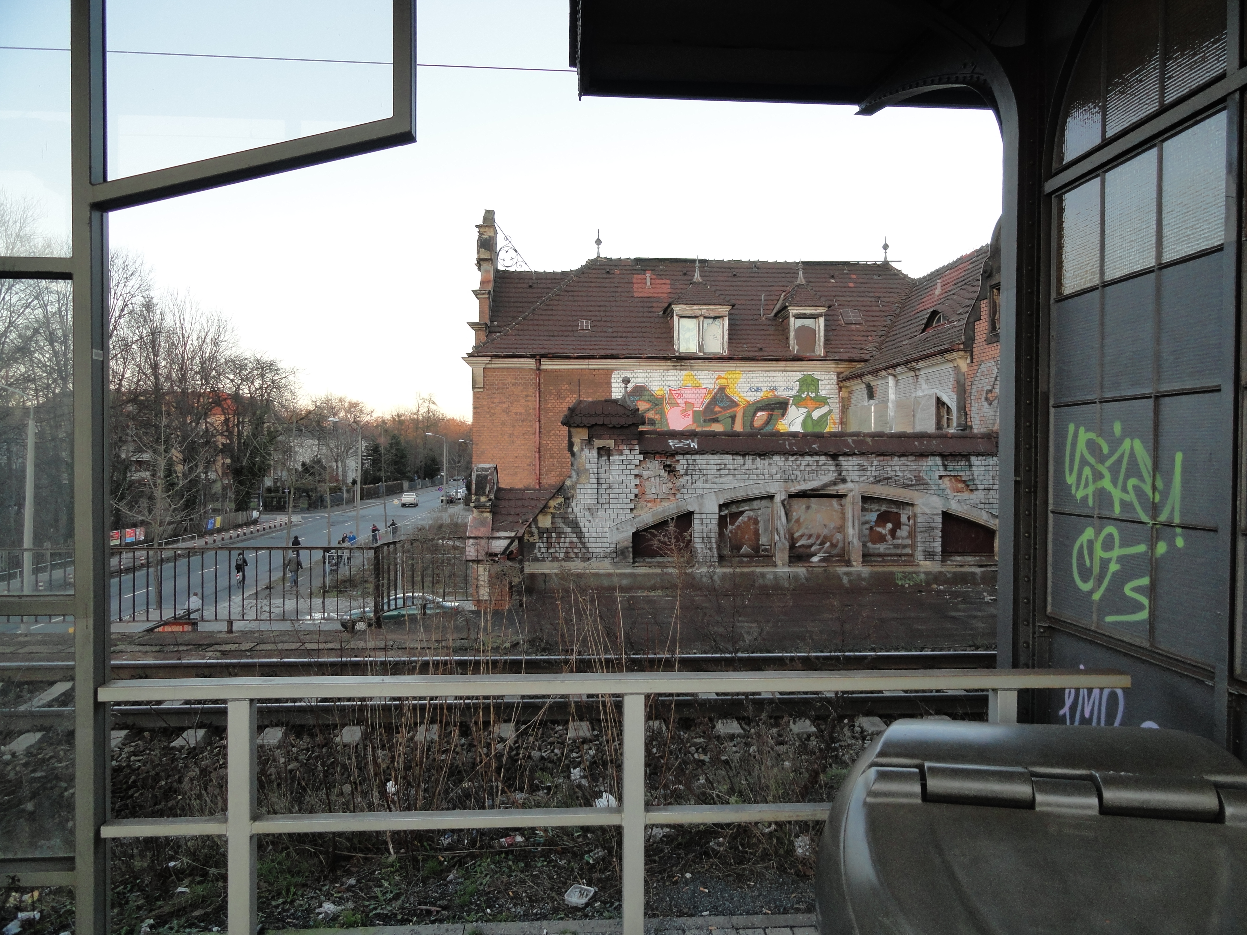 Weniger dramatisch sieht der Haltepunkt selbst aus - sauberer Bahnsteig, sauberer Aufgang, ordentliches Dach.