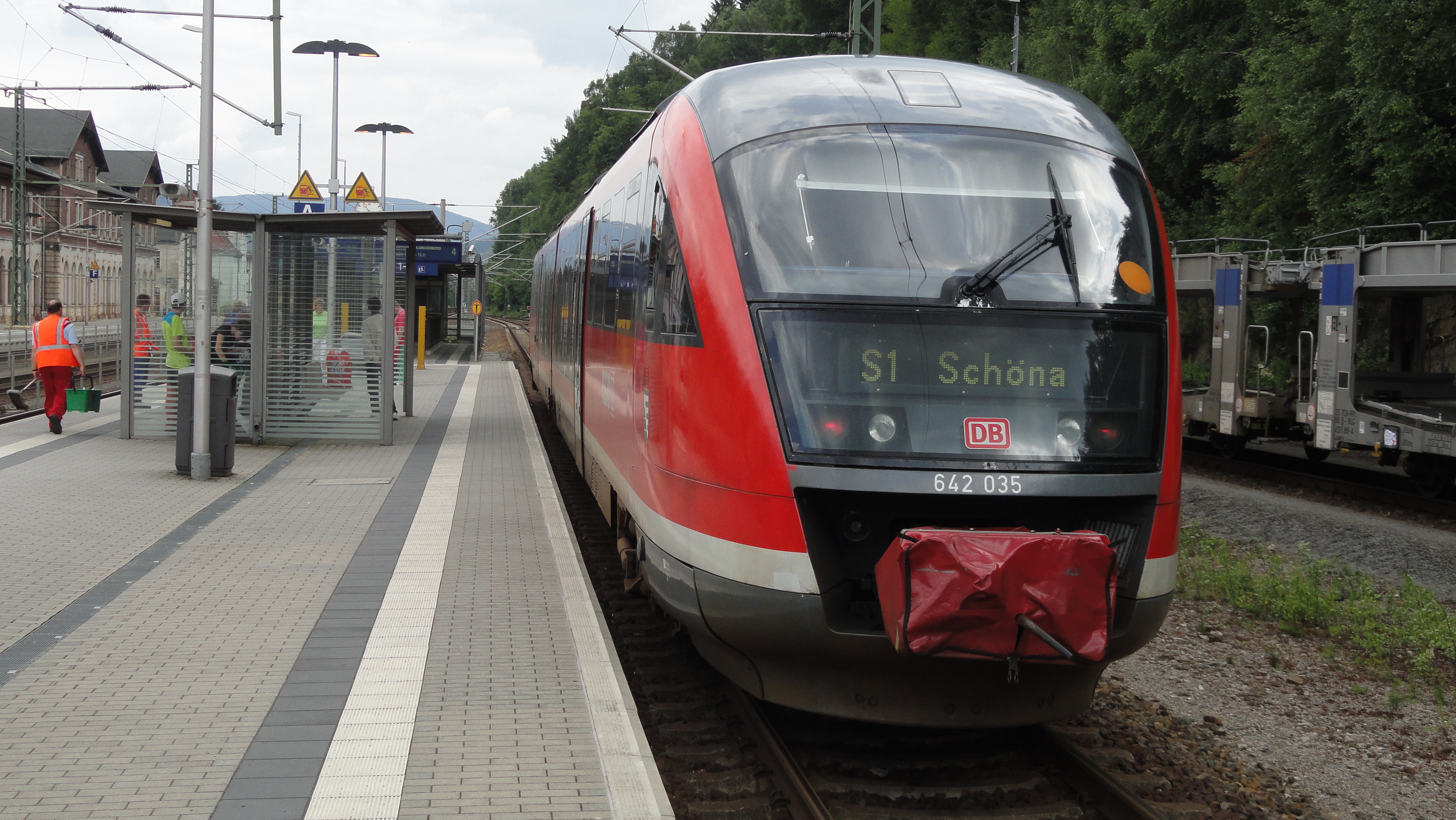 Dieser 642 ist als Elbe-Labe-Sprinter aus Decin gekommen und übernimmt jetzt ab Bad Schandau einen Ersatzzug der S1 nach Schöna.