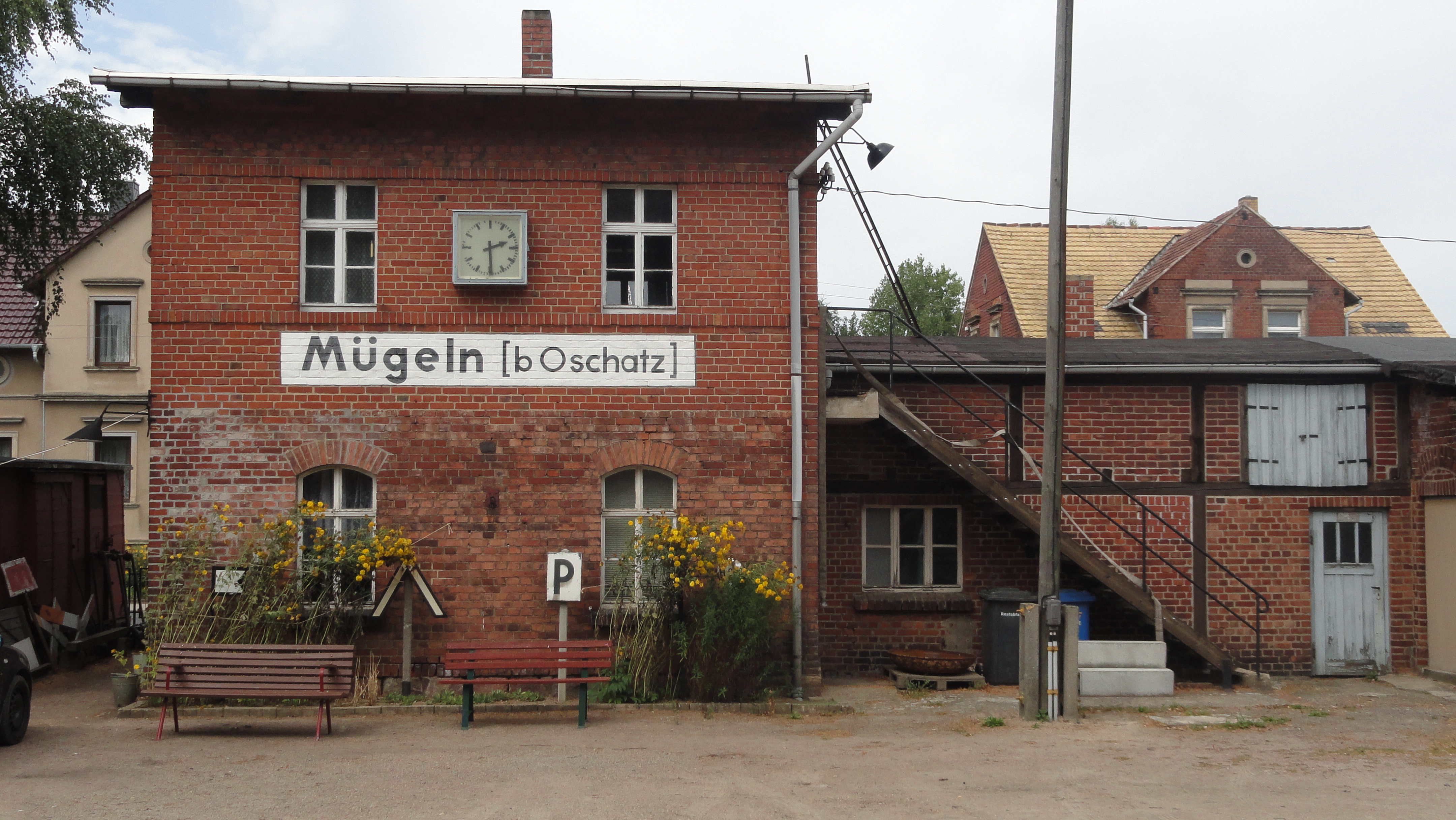 Die Ausstellung setzt sich auch vor diesem Gebäude (ex-Befehlsstellwerk?) fort.